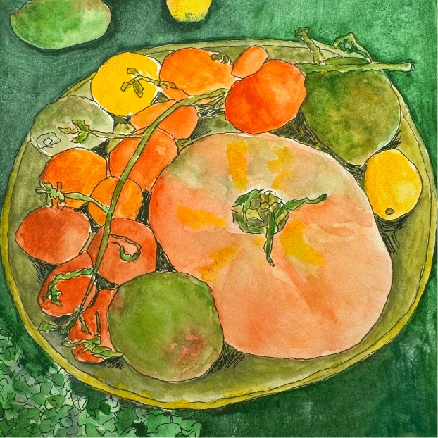 “Paperweights by Design”, watercolor by Evy Okerstrom,