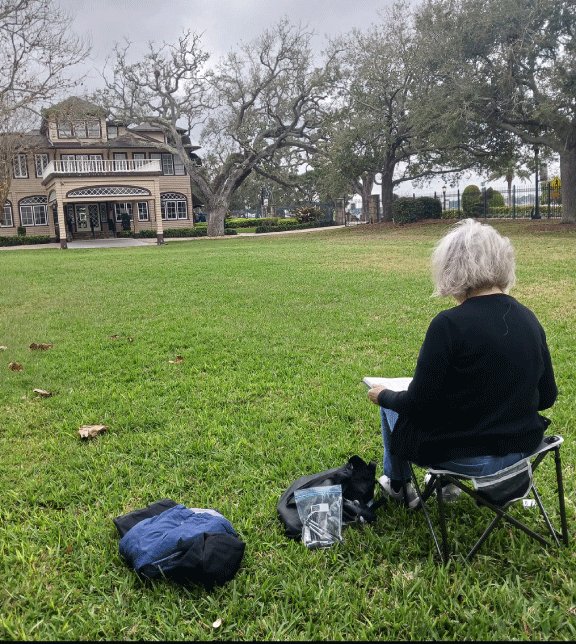 The new Urban Sketching group of Daytona Beach is growing. Our second outing was held on January 15 at The Casements in Ormond Beach. Nineteen people attended. It was a cool day, so many sketched indoors. I chose to work outside and drew the building. The group has a Facebook page and plans to meet again in February. There is no cost to join.